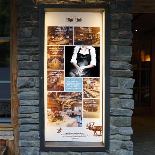 Den Charme des Alpenclubs unterstreicht der neue Auftritt mit verschiedenen Umsetzungen – von Plakaten und Inseraten über Broschüre und Flyer bis zu Menükarten und der Website. Bei allem Innovationsgeist bleibt der Alpenclub aber seiner Regionalität, den Traditionen und der Einfachheit treu. Ein Blick lohnt sich, ein Besuch zu jeder Jahreszeit noch mehr!