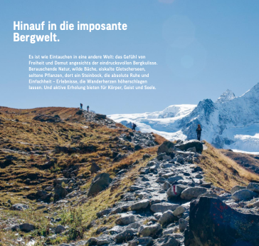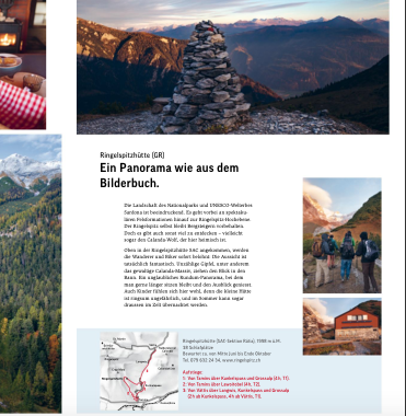 Faszinierende Bilder, einladende Hüttenporträts und spannende Interviews inspirieren zu erlebnisreichen Wanderausflügen. Von der sorgfältigen Planung über wertvolle Tipps für unterwegs bis zur Einkehr in eine der 152 SAC-Hütten nimmt die als Magazin konzipierte Broschüre Wanderfreunde Schritt für Schritt mit. Bergwandern zählt übrigens zu den beliebtesten Sportarten in der Schweiz und ist erst noch ideal für die Gesundheit. Auf geht’s, Wanderschuhe schnüren und ab über alle Berge!